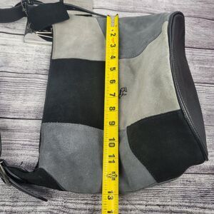 Emma Fox Leather Purse Shoulder Bag Strap Tote Bucket Style Black Gray Patchwork
