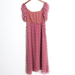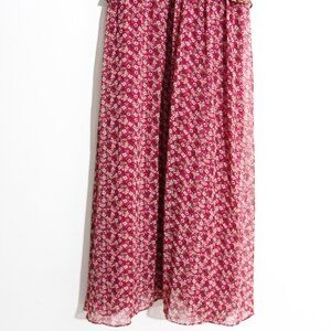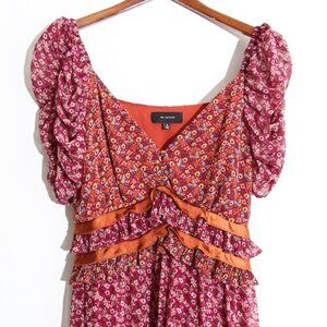 En Saison Affectionate Love Plum Purple Floral Print Ruffled Midi Dress Pleated