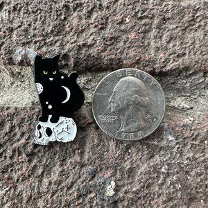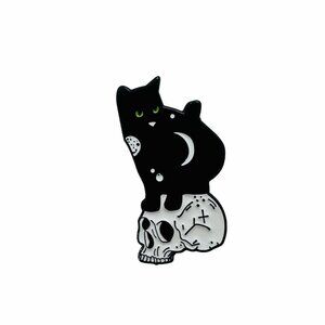 Enamel Pin Black Cat Skull Moon Green Eyes Keeper of Death Lunar Cat Broch New
