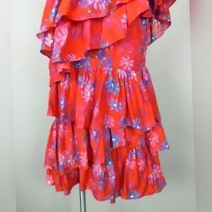 Endless Rose Vallis One Shoulder Floral Tiered Mini Dress Size Large