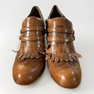 Enzo Angiolini Brown Leather Easena Ankle Side Zip Stiletto Booties size 9.5M
