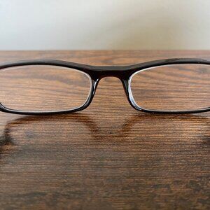 These Equate Phoenix BWN brown rectangle eyeglass frames are pre-owned and in good condition. The frames show light cosmetic wear from normal use, including faint scuffs along the arms and edges, but no cracks or structural damage. The hinges are intact and open and close smoothly. Overall, these stylish brown rectangle frames remain durable and ready for everyday wear.