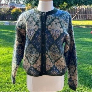 Rare Multicolor Vintage Cardigan Sweater. This gorgeous vintage sweater is exactly what your closet has been missing. Very warm & Cozy. Mohair blend. Button front with branded buttons.