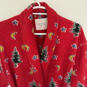 Erika Taylor Country Full Length Christmas Tree Fleece Warm Robe Red EUC Size L