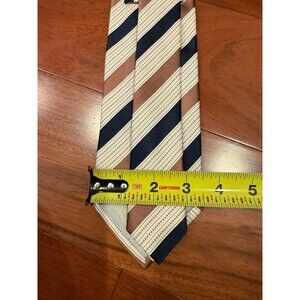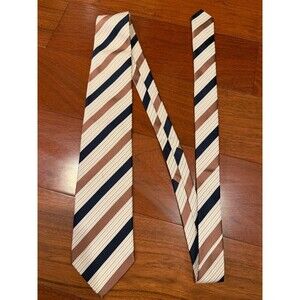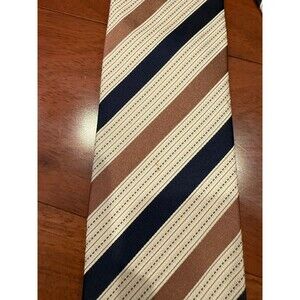 Ermenegildo Zegna Slant Stripe Silk Tie Cream, Brown, Black Dotted 3.5”W x 58"L