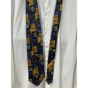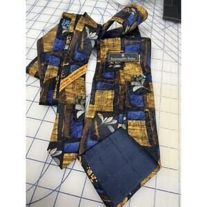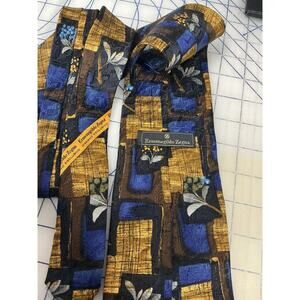 Ermenegildo Zegna Tie Gold Blue Geo Floral 100% Silk Necktie Italy Made Classic