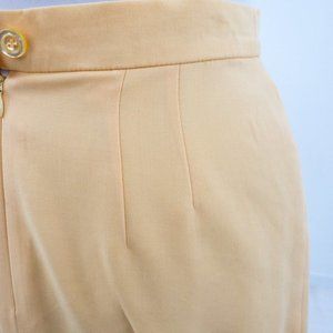 Vintage Escada lightweight 100% wool pencil skirt. Flattering & slimming high rise, knee length slim fit pencil. Unique layered slightly asymmetrical tulip-style hem. Buttery gold yellow plays neutral & shows off the origami cool lines of this workhorse staple! EUC.