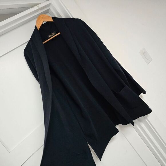 Escada 90s Wool Long Open Duster Shawl Cardigan in Black