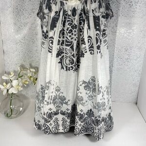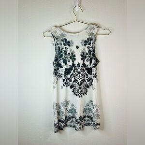 Espresso Women's Small Boho Floral Accent Sleeveless Tunic Top Black, Gray White