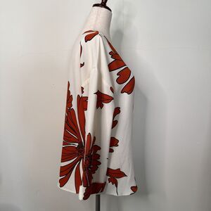 Essentiel Antwerp Womens Top White Textured Silk Floral Bell Sleeves Mod Size 36