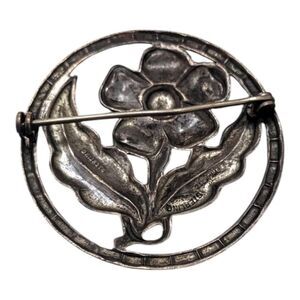 Estate Vintage Elegant Sterling Silver Elegant Flower Leaves Round Brooch Pin