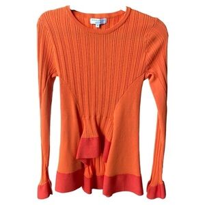 • Bells sleeves and a flowy peplum hem add a playful touch to this orange sweater by Esteban Cortazar
