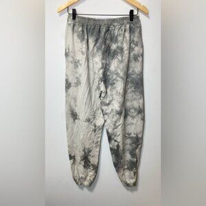 These are Eternelle sweatpants, made in Italy, size Medium. Crafted from a soft 95% cotton blend, they feature a white and grey allover print with a comfortable elastic waistband and relaxed fit — perfect for everyday wear or lounging.