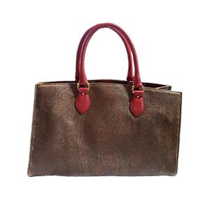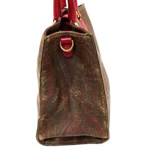 Etro (Authentic) Paisley Print Coated Canvas & Coral Pink Leather Large Bag VGUC