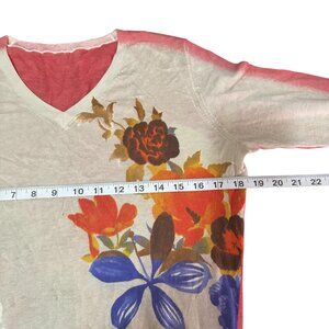 Etro Milano Women's Red/Tan Floral Rib Hem Cotton Cashmere Long Sleeve Size S