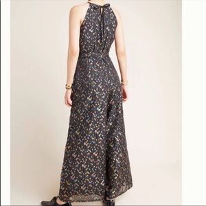 Gorgeous black halter jumpsuit with rainbow shimmer polka dots.