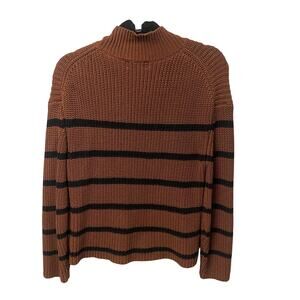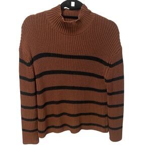 Evereve Brown Black Striped Mock Neck Pure Cotton Knit Sweater Womens Small