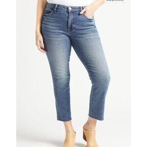 A faded blue wash adds vintage appeal to these high rise jeans by EVEREVE. Featuring a straight leg silhouette, cropped length, and raw hem, these jeans are the perfect spring update to your denim collection.