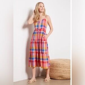 Embrace vibrant style with this colorful plaid dress by Evereve. 100% cotton and made in India. Also has pockets. No flaws.