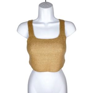 Everlane Cozy Stretch Wool Blend Crop Tank Top Camel Square Neck Sleeveless S