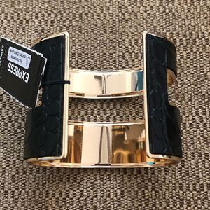 Black, Faux Alligator on a Gold Tone Cuff Bracelet. Modern and Classic!