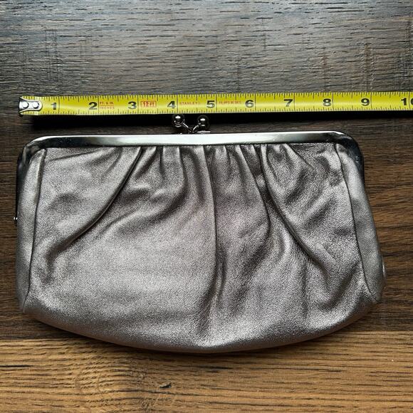 Express Genuine Leather Metallic Clutch Purse Kiss Lock Frame Bag Vintage Y2K