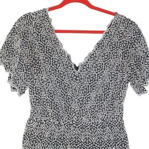 Express Scalloped and Embroidered Black/White Eyelet Romper, Lage