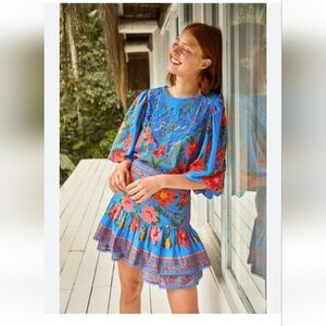 FARM Rio Blue Tropical Tapestry Mini Skirt