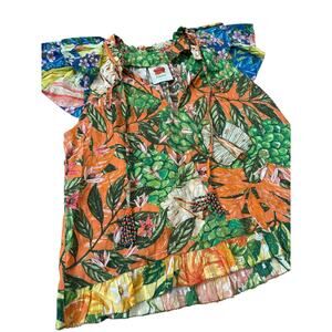 FARM Rio Caipirinha Ruffled Flutter Sleeve Blouse Multicolor Size XS