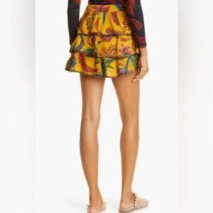 FARM Rio Tropical Tapestry Ruffle Miniskirt in Yellow SZ L NWT
