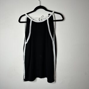 FATE Black & White Lined Stripe Tie Side Back Flowy Halter Blouse Top Small