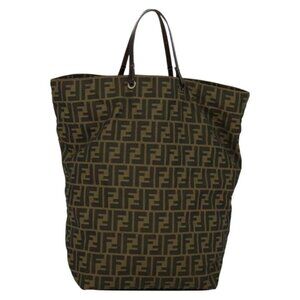FENDI Zucca Canvas Hand Bag Brown Black Auth