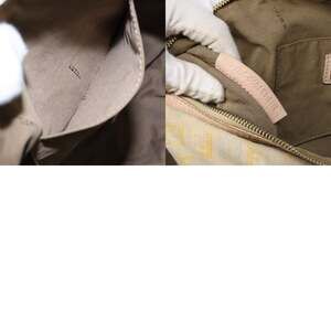 FENDI Zucchino Canvas Shoulder Bag Beige Gold