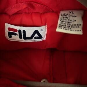 FILA VINTAGE SPELL OUT COLOR BLOCK PUFFER JACKET SIZE XL
