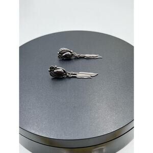 VINTAGE NATIVE AMERICAN NAVAJO BLACK ONYX STERLING SILVER FEATHER EARRINGS