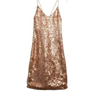 FOREVER 21 Gold Sequins Mini Dress Sz M Cocktail Party New Year Holiday Glam New