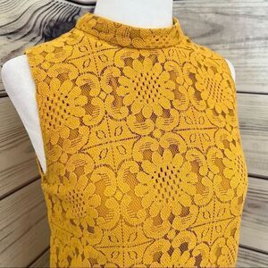FOREVER 21 Golden Yellow High Neck Lace Shift Dress Size Small