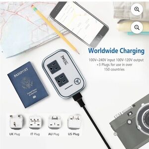 The Foval 200W Travel Adapter & Power Converter is designed for international travel, converting voltage from 100-240V to 110-120V for use with US devices. Key features include: