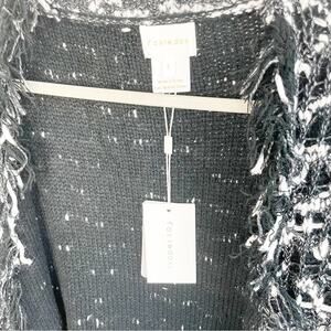 FOXIEDOX Black and White Knit Fringe Cardigan Size Large NWT