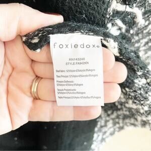 New with tags FOXIEDOX cardigan. Black and white thick fringe knit. Big pockets on the front. Open front. Size large.