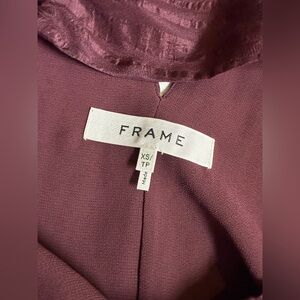 This relaxed deep eggplant halter neck blouse from Frame Denim, size XS, features a sleeveless design with a flowing silhouette. The unique halter neckline adds a touch of elegance, making it a versatile addition to any wardrobe.
