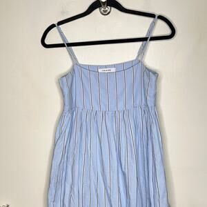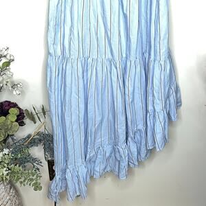 FRAME Gemma Asymmetrical Maxi Dress Ciel Blue Stripe Cotton Poplin {C53}