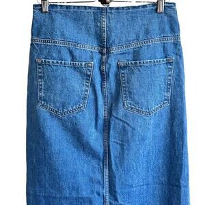 FRAME Sea Cut Off Waist Maxi Jean Denim Skirt Raw Hem Blue Front Slit size 26