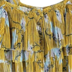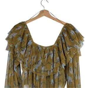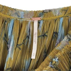 FREE PEOPLE FRILLS AND THRILLS RUFFLED TIERED SHEER FLORAL LONG SLEEVE CROP TOP