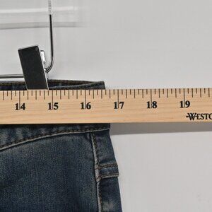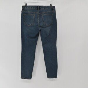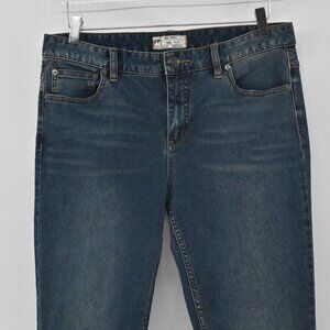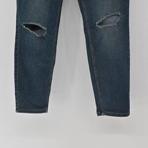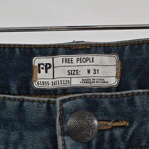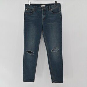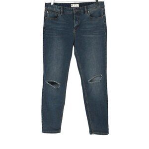 FREE PEOPLE Jeans Women's Size 31 Dark Wash Distressed Busted Knee Mid Rise Skinny Stretch Zip Fly Button Closure Bohemian Boho Grunge