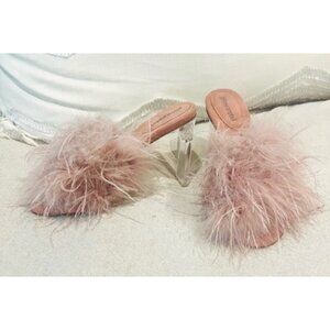 FREE PEOPLE X JEFFREY CAMPBELL Sz 7 DAISY FEATHER BOA HEELS PINK