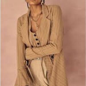 FREE PEOPLE Stella Striped double breasted frayed hem linen blend Blazer sz xs