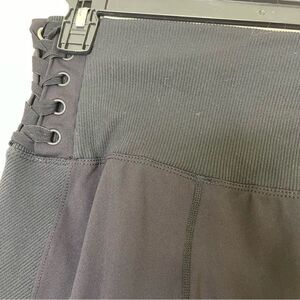 •Features: Black legging with ribbed trim and lace up side detail. Internal back pocket.