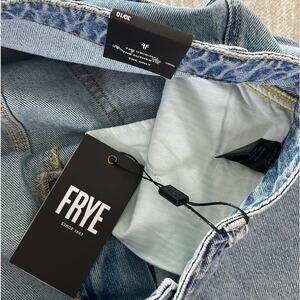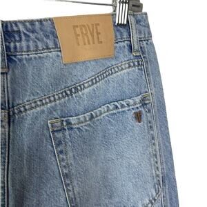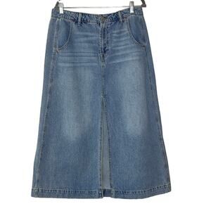 FRYE Front-Slit Seamed Denim Midi Skirt Size 30/10. Zipper and button closure at front; belt loops, pockets. Slit at front, classic fit.Cotton; pocketing: polyester. NWT Measurements: waist 17", length 34.5"