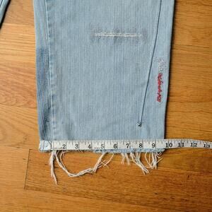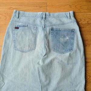 FUBU Light Wash Baggy Loose Fit 90s Hip Hop Blue Jeans W36 Distressed Raw Hem